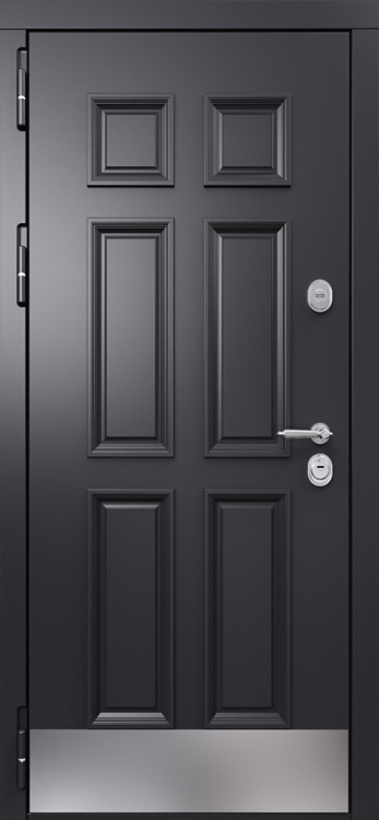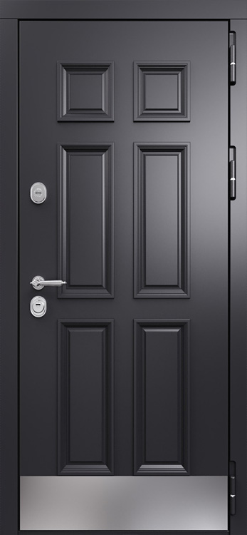 Входная дверь с МДФ №566 создана для тех, кто ценит прочность металла и уютный внешний вид в одном решении. Она одинаково хорошо вписывается в частный дом, квартиру или офис, подчеркивая солидность пространства и обеспечивая надежную защиту. Каркас и полотно собраны из профильных труб, усиленных ребрами жесткости, а стальной лист толщиной 2 мм гарантирует устойчивость к взлому и длительный срок службы. С обеих сторон дверь облицована МДФ панелями с ПВХ-покрытием, что делает поверхность более устойчивой к истиранию и мелким повреждениям, сохраняя привлекательность даже при интенсивной эксплуатации. Панели легко очищаются и не выгорают на солнце, благодаря чему дверь подходит и для уличной установки. Два контура уплотнения надежно защищают от сквозняков и посторонних запахов, а при необходимости можно дополнительно усилить конструкцию тепло- и шумоизоляцией. Модель №566 сочетает в себе сдержанный дизайн и функциональность, делая ее практичным выбором для самых разных помещений. Входная дверь с МДФ №566 от производителя: быстрое изготовление и монтаж в Туле, индивидуальные размеры, широкий выбор материалов и фурнитуры, официальная гарантия до 10 лет.
