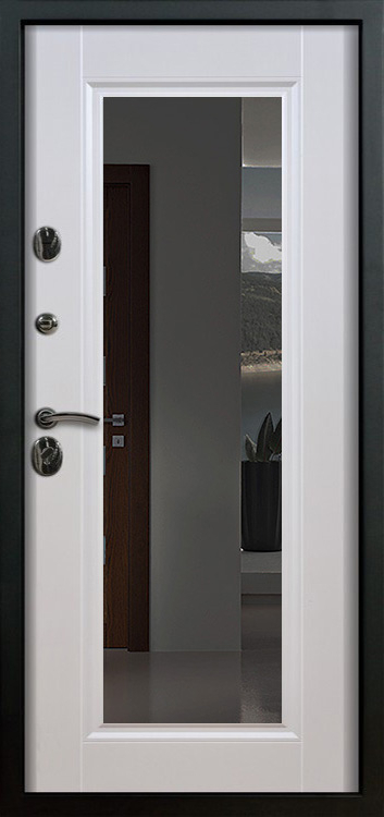 Металлическая входная дверь с зеркалом внутри №1 создана как универсальное решение для дома, квартиры или офиса, где важны и безопасность, и комфорт. Каркас выполнен из прочной профильной трубы с металлическим листом толщиной 2 мм и рёбрами жёсткости, что обеспечивает устойчивость к механическим воздействиям и долгий срок службы. Снаружи дверь покрыта порошковой окраской, стойкой к атмосферным влияниям и царапинам, а изнутри отделана МДФ с ПВХ-покрытием, которое сохраняет свежий вид даже при интенсивной эксплуатации. Встроенное зеркало превращает полотно в практичный элемент интерьера: оно визуально расширяет пространство прихожей и избавляет от лишних предметов мебели. Два контура уплотнителей защищают от пыли и сквозняков, а блокираторы усиливают общую надёжность конструкции. Модель не оснащена терморазрывом, зато отличается продуманным балансом практичности и доступной цены, оставаясь удобным вариантом для повседневного использования. Металлическая входная дверь с зеркалом внутри №1 от производителя: быстрое изготовление и монтаж в Туле, индивидуальные размеры, широкий выбор материалов и фурнитуры, официальная гарантия до 10 лет.