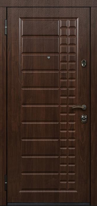 Входная дверь в деревянный дом №23 создана так, чтобы гармонично вписываться в архитектуру коттеджа или загородного жилища, но при этом не терять своей универсальности — она одинаково хорошо подойдёт и для квартиры, и для офиса. Конструкция основывается на прочном металлическом каркасе из профильной трубы с листом стали толщиной 2 мм и рёбрами жёсткости, которые обеспечивают долговечность и устойчивость к нагрузкам. С обеих сторон дверь облицована плитами МДФ, материалом, который выгодно сочетает декоративность и практичность: он устойчив к мелким повреждениям, не выгорает и долго сохраняет аккуратный внешний вид. Два контура уплотнителей создают надёжную защиту от пыли и сквозняков, а блокираторы усиливают уровень безопасности. Терморазрыв в конструкции не предусмотрен, но при необходимости можно дополнительно усилить тепло- и шумоизоляцию. Эта модель объединяет сдержанный дизайн и крепкую основу, что делает её хорошим выбором для частного дома с естественной атмосферой уюта. Входная дверь в деревянный дом №23 от производителя: быстрое изготовление и монтаж в Туле, индивидуальные размеры, широкий выбор материалов и фурнитуры, официальная гарантия до 10 лет.