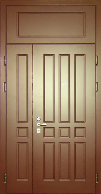 Полуторная входная дверь с верхней фрамугой №2 — это оптимальное решение для тех, кто ищет функциональность и эстетичность в одном продукте. Она отличается стильной отделкой из МДФ, которая устойчива к механическим повреждениям и сохраняет свой внешний вид на долгие годы. Конструкция двери включает прочный каркас из профильной трубы 50х25 мм и металл толщиной 2 мм, что обеспечивает высокую надежность. Наличие верхней фрамуги придает двери визуальную легкость и позволяет пропускать больше света, создавая уют в прихожей. Замки от надежных производителей, таких как Просам и Мосрентген, с тремя ригелями гарантируют высокий уровень безопасности. Для дополнительной кастомизации можно добавить стеклопакет, зеркало или кованые элементы, а также установить видеодомофон для контроля доступа. Полуторная входная дверь с верхней фрамугой №2 от производителя: быстрое изготовление и монтаж в Туле, индивидуальные размеры, широкий выбор материалов и фурнитуры, официальная гарантия до 10 лет.