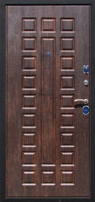 Входная дверь в квартиру ширина стандарт №41 создана как универсальное решение для городских квартир, частных домов и офисных помещений. Конструкция на основе профильной трубы и листа стали толщиной 2 мм обеспечивает прочность и устойчивость к взлому, а рёбра жёсткости добавляют дополнительную надёжность. С обеих сторон дверь облицована плитами МДФ, которые придают поверхности аккуратный внешний вид и защищают её от мелких повреждений. Такой вариант отделки отличается практичностью: панели устойчивы к влаге, сохраняют форму и цвет, даже если дверь эксплуатируется ежедневно. Два контура резиновых уплотнителей не дают проникнуть сквознякам и уличному шуму, а терморазрыв в коробке и полотне препятствует промерзанию в холодное время года. Благодаря стандартной ширине установка не требует сложных подготовительных работ, а при необходимости дверь может быть изготовлена в индивидуальном размере. Входная дверь в квартиру ширина стандарт №41 от производителя: быстрое изготовление и монтаж в Туле, индивидуальные размеры, широкий выбор материалов и фурнитуры, официальная гарантия до 10 лет.