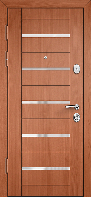 Надежность в сочетании с эстетикой делает такую модель привлекательной для самых разных помещений — от квартиры до офиса или частного дома. Прочный стальной каркас, усиленный ребрами жесткости и листом металла толщиной 2 мм, обеспечивает устойчивость к нагрузкам, а два замка российского производства отвечают за безопасность. Снаружи и внутри полотно облицовано панелями МДФ с покрытием ПВХ, которое стойко переносит царапины, влажность и долго сохраняет первоначальный вид. Красивая входная дверь в квартиру №9 доступна с выбором направления и типа открывания, что упрощает установку в любых условиях. Два контура резинового уплотнителя защищают от сквозняков, а при необходимости модель можно оснастить дополнительной изоляцией, зеркалом или даже электронным замком. Это решение для тех, кто ищет практичность и современный внешний облик в одном изделии. Красивая входная дверь в квартиру №9 от производителя: быстрое изготовление и монтаж в Туле, индивидуальные размеры, широкий выбор материалов и фурнитуры, официальная гарантия до 10 лет.