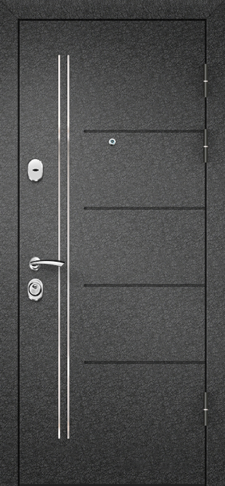 Порошковая входная дверь №65 объединяет прочность металла и практичную отделку, делая её универсальным выбором для квартиры, офиса или подъезда. Каркас и полотно собраны из профильной трубы, усиленной ребрами жесткости, а стальной лист толщиной 2 мм придает конструкции дополнительную устойчивость к нагрузкам. Снаружи нанесено молотковое напыление — покрытие, стойкое к царапинам и атмосферным воздействиям, благодаря чему дверь долго сохраняет аккуратный внешний вид. Внутренняя сторона оформлена ламинированными панелями, создающими ощущение тепла и комфорта. Два резиновых контура уплотнения помогают отсечь сквозняки и пыль, при необходимости можно добавить шумо- и теплоизоляцию. Модель №65 сочетает надежность и лаконичность, а её внешний вид гармонично впишется как в жилое пространство, так и в деловую среду. Порошковая входная дверь №65 от производителя: быстрое изготовление и монтаж в Туле, индивидуальные размеры, широкий выбор материалов и фурнитуры, официальная гарантия до 10 лет.