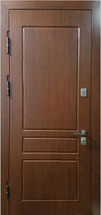 Дверь входная уличная с терморазрывом №41 – это надежная и стильная модель, идеально подходящая для частных домов и коттеджей. Конструкция двери с терморазрывом в коробке и полотне эффективно защищает от холодного воздуха и влаги, обеспечивая стабильный микроклимат внутри помещения. Внешняя и внутренняя отделка из панелей МДФ с ПВХ покрытием не только привлекает внимание своим современным дизайном, но и обеспечивает отличную стойкость к механическим повреждениям, а также долговечность. Металлическое полотно толщиной 1,5 мм с ребрами жесткости из профильных труб гарантирует высокую прочность, а также надежную защиту от взлома. Шумо- и теплоизоляция из пенопласта повышенной плотности создают дополнительный комфорт. Дверь оснащена высококачественными замками Kale Kilit с тремя ригелями, что обеспечивает высокий уровень безопасности. Дверь входная уличная с терморазрывом №41 от производителя: быстрое изготовление и монтаж в Туле, индивидуальные размеры, широкий выбор материалов и фурнитуры, официальная гарантия до 10 лет.
