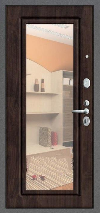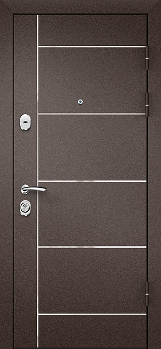 Каркас из профильной трубы и стальной лист толщиной 2 мм обеспечивают прочность конструкции и устойчивость к взлому, а два контура уплотнителей защищают помещение от сквозняков и уличного шума. Входная дверь в квартиру с зеркалом №10 выделяется сочетанием практичного молоткового напыления снаружи и аккуратной плиты МДФ внутри. Такое покрытие не боится механических повреждений и перепадов температуры, долго сохраняя первоначальный вид. Зеркало на внутренней стороне делает прихожую светлее и визуально просторнее, заменяя полноценное настенное. Дополнительные блокираторы и система ребер жёсткости усиливают надежность. Возможность изготовления в любых размерах позволяет адаптировать модель под особенности квартиры, офиса или частного дома, сохранив баланс между эстетикой и безопасностью. Входная дверь в квартиру с зеркалом №10 от производителя: быстрое изготовление и монтаж в Туле, индивидуальные размеры, широкий выбор материалов и фурнитуры, официальная гарантия до 10 лет.