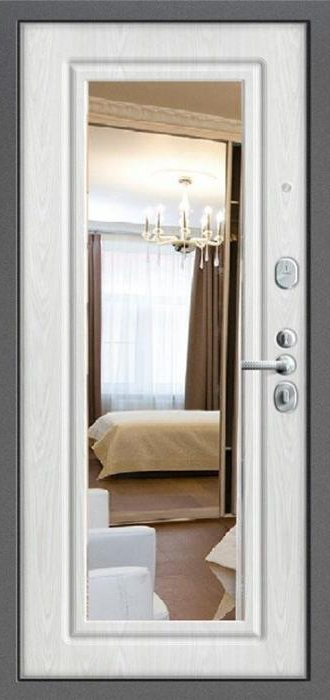 Белый цвет придаёт этой модели лёгкость и универсальность, а зеркало на внутренней стороне делает её особенно удобной для квартир и офисов, где важно сочетать практичность и эстетику. Дверь входная металлическая белая с зеркалом №51 изготовлена на основе прочного стального каркаса с листом металла толщиной 2 мм и усилена рёбрами жёсткости, что обеспечивает надёжность и долговечность. Плиты МДФ во внутренней и внешней отделке устойчивы к повреждениям и сохраняют аккуратный вид даже при интенсивном использовании. Два контура уплотнения помогают удерживать тепло и блокировать сквозняки, а пара замков — сувальдный Просам и цилиндровый Мосрентген — обеспечивают высокий уровень защиты. Зеркальная вставка экономит пространство и визуально расширяет коридор, делая дверь не только защитной, но и функциональной частью интерьера. Дверь входная металлическая белая с зеркалом №51 от производителя: быстрое изготовление и монтаж в Туле, индивидуальные размеры, широкий выбор материалов и фурнитуры, официальная гарантия до 10 лет.