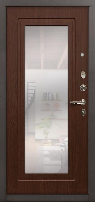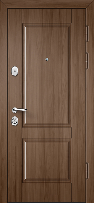 Входная дверь с зеркальными вставками №56 сочетает надежность металлической конструкции и удобство функционального декора. Зеркало не только украшает интерьер, но и делает помещение визуально просторнее, что особенно ценно для квартир и офисов. Для частного дома такая дверь добавляет практичности — всегда можно взглянуть на отражение, выходя на улицу. Отделка выполнена из панелей МДФ с ПВХ-покрытием, устойчивым к царапинам и мелким повреждениям, что обеспечивает долговечность и сохранение первоначального вида. Каркас собран из профильной трубы, усилен рёбрами жёсткости и металлическим листом толщиной 2 мм, благодаря чему дверь выдерживает серьёзные нагрузки и обеспечивает защиту от взлома. Два контура уплотнения препятствуют проникновению сквозняков и пыли, а резиновый уплотнитель сохраняет плотное прилегание полотна. Замковая система включает надежные российские механизмы Просам и Мосрентген, которые отличаются стабильной работой и высоким ресурсом. Дверь №56 — это прочность, удобство и современный дизайн в одной конструкции. Входная дверь с зеркальными вставками №56 от производителя: быстрое изготовление и монтаж в Туле, индивидуальные размеры, широкий выбор материалов и фурнитуры, официальная гарантия до 10 лет.