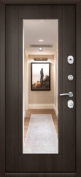 Входная дверь с зеркалом внутри №71 удачно сочетает практичность и надежность, оставаясь при этом стильным элементом интерьера. Она подходит для квартиры, офиса или частного дома, создавая удобство в быту и подчеркивая статус владельца. Внешняя сторона покрыта порошковой окраской, устойчивой к царапинам и перепадам температуры, что гарантирует долговечность и сохранение привлекательного вида. Внутри установлена накладка из МДФ, которая придает поверхности уют и делает её гармоничной частью интерьера. Зеркало на внутренней стороне экономит пространство прихожей и добавляет ей визуальной глубины. Каркас из профильной трубы с листом стали толщиной 2 мм и ребрами жесткости обеспечивает прочность и устойчивость ко взлому. Два контура уплотнителей создают дополнительную защиту от сквозняков и пыли, а терморазрыв в коробке и полотне предотвращает промерзание зимой. Для безопасности предусмотрены два замка российского производства с ригельными системами, при желании возможна замена на замки премиальных марок или установка умных электронных решений. Дверь входная с зеркалом внутри №71 от производителя: быстрое изготовление и монтаж в Туле, индивидуальные размеры, широкий выбор материалов и фурнитуры, официальная гарантия до 10 лет.