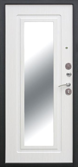 Надёжность металлической двери всегда в приоритете, но когда она получает дополнительное оснащение, результат становится особенно удобным. Входная дверь с зеркалом №78 удачно объединяет прочность конструкции и практичность деталей: массивный каркас из профильной трубы, лист стали толщиной 2 мм и усиленные рёбра жёсткости формируют крепкий защитный барьер, а зеркало на внутренней стороне делает её частью интерьера, экономя место и добавляя визуального простора. Снаружи используется молотковое напыление, устойчивое к царапинам и погодным перепадам, благодаря чему дверь подходит как для квартиры, так и для частного дома. Внутренняя отделка выполнена плитой МДФ, которая выглядит стильно и сохраняет аккуратность даже при активной эксплуатации. Два контура уплотнения помогают защитить помещение от сквозняков, а при необходимости конструкцию можно дополнить шумоизоляцией, современными замками и даже видеодомофоном. Входная дверь с зеркалом №78 от производителя: быстрое изготовление и монтаж в Туле, индивидуальные размеры, широкий выбор материалов и фурнитуры, официальная гарантия до 10 лет.