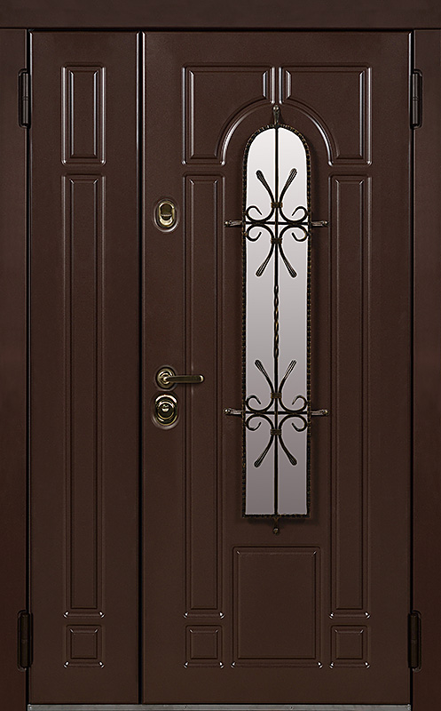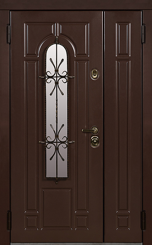 Эта металлическая двухстворчатая дверь с арочным стеклопакетом №15 представляет собой идеальный баланс между эстетикой и прочностью. Арочное стекло добавляет в её дизайн утончённость, а ковка в декоре придаёт изысканный, но в то же время крепкий и надёжный вид. Плита МДФ, используемая как для внешней, так и для внутренней отделки, не только сохраняет прекрасный внешний вид, но и устойчива к механическим повреждениям. Металлическая двухстворчатая дверь с арочным стеклопакетом №15 от производителя: быстрое изготовление и монтаж в Туле, индивидуальные размеры, широкий выбор материалов и фурнитуры, официальная гарантия до 10 лет.