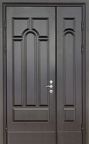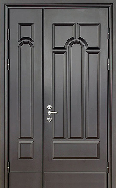 Металлическая двухстворчатая дверь для дома цвета графит №27 – это стильное и надежное решение для вашего жилья. Внешняя и внутренняя отделка выполнены из МДФ, что придает двери изысканный вид и увеличивает её стойкость к механическим повреждениям. Цвет графит придаёт двери современный и элегантный оттенок, который легко впишется в интерьер как частных домов, так и современных офисов. Металлическая двухстворчатая дверь для дома цвета графит №27 от производителя: быстрое изготовление и монтаж в Туле, индивидуальные размеры, широкий выбор материалов и фурнитуры, официальная гарантия до 10 лет.