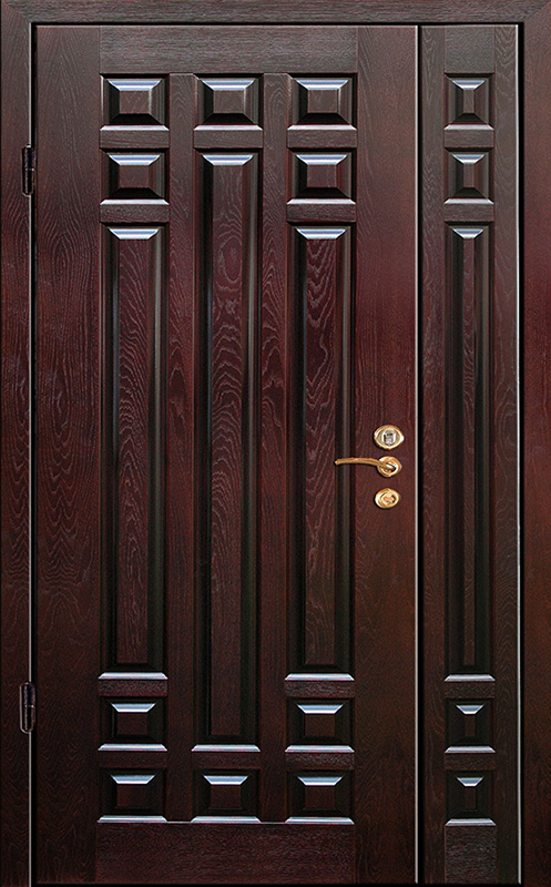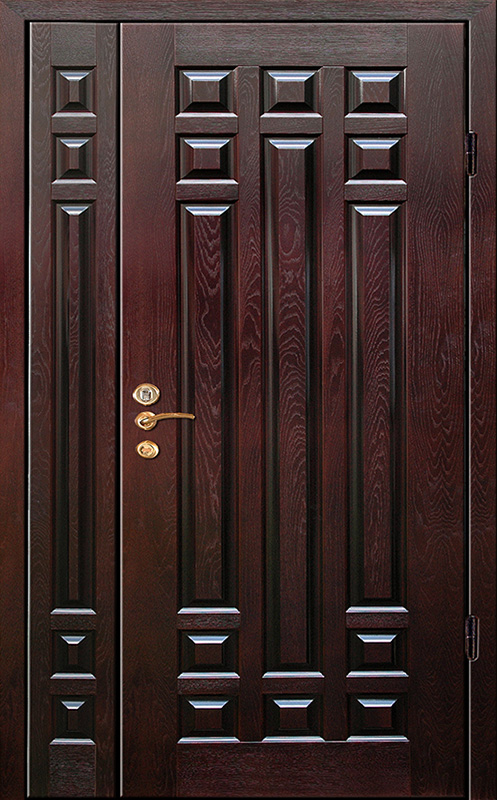 Эта двухстворчатая парадная дверь с объемной фрезеровкой №3 станет отличным акцентом в любом интерьере, добавив элегантности и солидности. Внешняя и внутренняя отделка из натурального дерева придает двери натуральный и стильный вид, который легко впишется как в классические, так и современные дизайны. Прочная конструкция двери с каркасом из профильной трубы 50х25 мм и листом металла толщиной 2 мм гарантирует долговечность и защиту. Ребра жесткости из профильных труб 40х25 мм повышают ее устойчивость к нагрузкам. Замки "Просам" и "Мосрентген" с тремя ригелями обеспечивают надежную защиту. Возможность выбора отделки и установки дополнительных элементов, таких как зеркало, стеклопакет или кованые детали, позволяет сделать дверь уникальной и подходящей под любые требования. Терморазрыв полотна и коробки способствует улучшению теплоизоляции. Вдобавок можно оснастить дверь современными замками и видеодомофоном для дополнительного комфорта и безопасности. Парадная двухстворчатая дверь с объемной фрезеровкой №3 от производителя: быстрое изготовление и монтаж в Туле, индивидуальные размеры, широкий выбор материалов и фурнитуры, официальная гарантия до 10 лет.