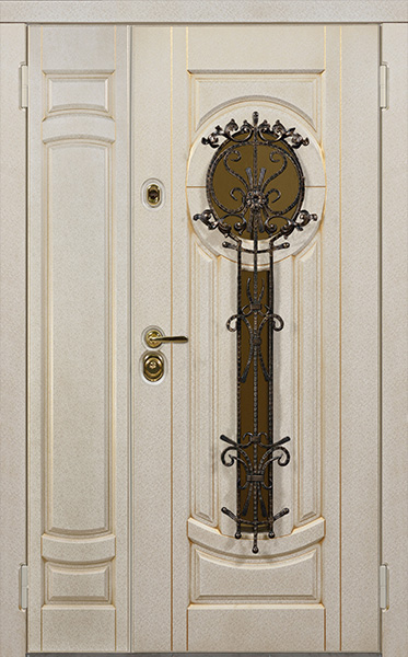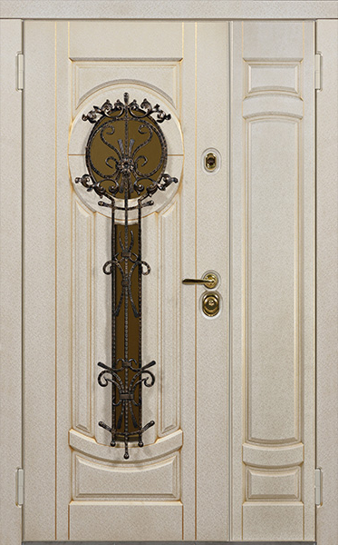 Двухстворчатая парадная дверь с ковкой и стеклом белая №30 — это сочетание красоты и надёжности. Конструкция из профильной трубы 50х25 мм и металлического листа толщиной 2 мм обеспечивает долговечность и стойкость к внешним воздействиям. Элементы ковки придают двери изысканный вид, а стеклопакет позволяет создать атмосферу лёгкости и прозрачности. Внешняя и внутренняя отделка выполнены из плиты МДФ, что делает дверь не только привлекательной, но и устойчивой к механическим повреждениям. Для дополнительной герметичности используются уплотнители с двумя контурами, а блокираторы обеспечат безопасность. Вариативность размеров и возможность добавления дополнительных опций, таких как шумо- и теплоизоляция, делают эту модель универсальной для установки в любом интерьере. Двухстворчатая парадная дверь с ковкой и стеклом белая №30 от производителя: быстрое изготовление и монтаж в Туле, индивидуальные размеры, широкий выбор материалов и фурнитуры, официальная гарантия до 10 лет.
