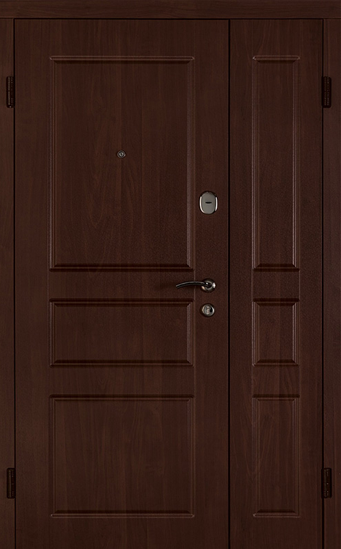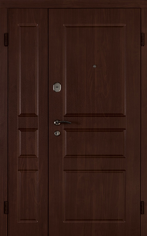Коричневая входная полуторная дверь с филенчатой створкой №4 – это надежное и стильное решение для вашего дома или офиса. Внешняя и внутренняя отделка из МДФ с ПВХ обеспечивает долговечность и устойчивость к повреждениям, сохраняя при этом элегантный внешний вид. Прочные материалы конструкции, такие как профильная труба 50х25 мм и лист металла толщиной 2 мм, гарантируют стабильность и безопасность. Ребра жесткости из профильных труб 40х25 мм усиливают дверное полотно, а уплотнение с двумя контурами надежно защищает от внешних факторов. Несмотря на отсутствие терморазрыва, в двери реализованы терморазрывы в коробке и полотне, что помогает улучшить теплоизоляцию. Возможность выбора дополнительных опций, таких как шумоизоляция, делает эту дверь универсальной для различных условий эксплуатации. Коричневая входная полуторная дверь с филенчатой створкой №4 от производителя: быстрое изготовление и монтаж в Туле, индивидуальные размеры, широкий выбор материалов и фурнитуры, официальная гарантия до 10 лет.