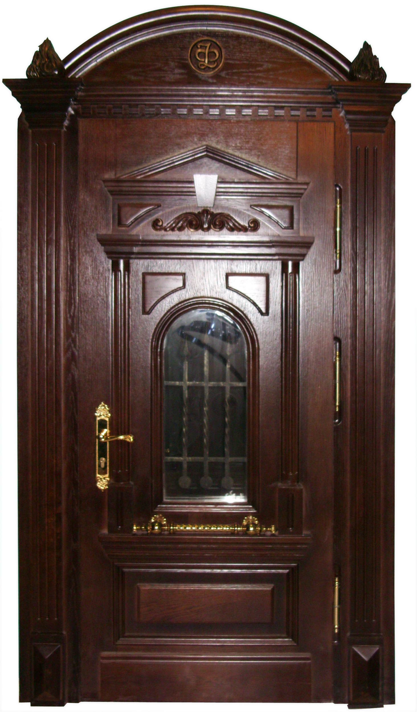 Входная дверь со стеклопакетом и патиной для загородного дома белая №29