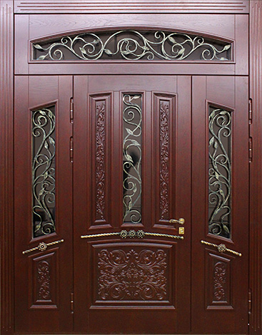 Эта модель создана для тех, кто ценит солидность и внушительный внешний вид парадного входа. Натуральный массив дуба в отделке придаёт дверному полотну статусный характер, а стеклянные вставки позволяют добавить света и лёгкости фасаду дома. При этом основа конструкции выполнена из прочной профильной трубы с использованием листа металла толщиной 2 мм и ребер жёсткости, что гарантирует надёжность и устойчивость к взлому. Двустворчатая входная дверь со стеклом №39 удобна для широких проёмов коттеджей и частных домов, обеспечивая не только безопасность, но и удобство при внесении крупногабаритной мебели. Итальянские замки Cisa сочетают в себе высокий класс защиты и плавность хода механизма, а наличие двух контуров уплотнения дополнительно защищает от сквозняков. Возможность комбинировать отделку, добавить зеркало, витраж или кованые элементы делает модель гибкой для индивидуального дизайна и подчеркивает её представительский статус. Двустворчатая входная дверь со стеклом №39 от производителя: быстрое изготовление и монтаж в Туле, индивидуальные размеры, широкий выбор материалов и фурнитуры, официальная гарантия до 10 лет.