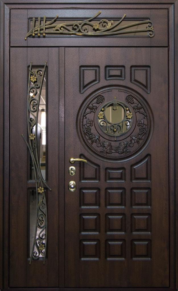 Дверь входная со стеклом в частный дом №382 сочетает массивность металла и изящество натурального дерева, создавая надежный и одновременно представительный парадный вход. Каркас и полотно выполнены из стальной профильной трубы с листом металла толщиной 2 мм и усилены ребрами жесткости, что обеспечивает долговечность и прочность конструкции. Облицовка массивом дерева придает двери благородный внешний вид, устойчивый к царапинам и воздействию времени, а также гармонично вписывается в архитектуру частного дома или коттеджа. Вставка из стекла делает интерьер светлее, подчеркивает индивидуальность фасада и визуально облегчает крупное полотно. Два контура уплотнителей защищают от сквозняков и влаги, а встроенные блокираторы повышают надежность. Такая дверь становится не просто функциональным элементом, а настоящим украшением высокого входа. Высокая входная дверь со стеклом в частный дом №15 от производителя: быстрое изготовление и монтаж в Туле, индивидуальные размеры, широкий выбор материалов и фурнитуры, официальная гарантия до 10 лет.