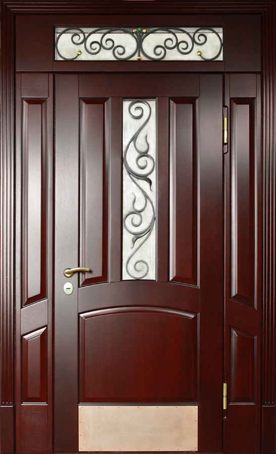 Красивая шпонированная дверь с надежной фурнитурой и ковкой "лоза" №33 идеально дополнит интерьер вашего частного дома или коттеджа. Внешняя и внутренняя отделка выполнены из натурального дерева, что придает двери элегантность и стиль. Профильная труба 50х25 мм используется для каркаса и полотна, а лист металла толщиной 2 мм и ребра жесткости из профильных труб 40х25 мм обеспечивают прочность и долговечность. Несмотря на отсутствие терморазрыва, дверь гарантирует надежную защиту и теплоизоляцию благодаря двум контурам уплотнения. Элементы ковки "лоза" придают двери особое очарование, сочетая практичность с эстетикой. Эта дверь — идеальный выбор для тех, кто ценит стиль, качество и безопасность. Красивая шпонированная дверь с надежной фурнитурой и ковкой "лоза" №33 от производителя: быстрое изготовление и монтаж в Туле, индивидуальные размеры, широкий выбор материалов и фурнитуры, официальная гарантия до 10 лет.