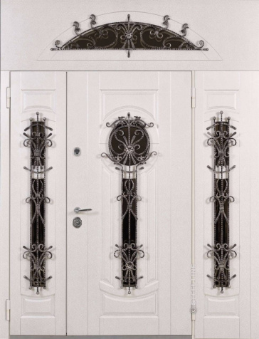 Входная металлическая дверь с порошковым покрытием стеклом и ковкой в частный дом №27