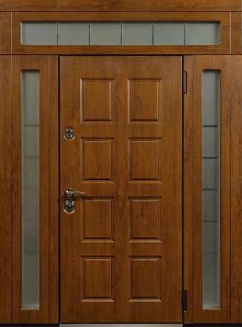 Дверь с порошковым напылением с высокой шумотеплоизоляцией и фрамугой №10