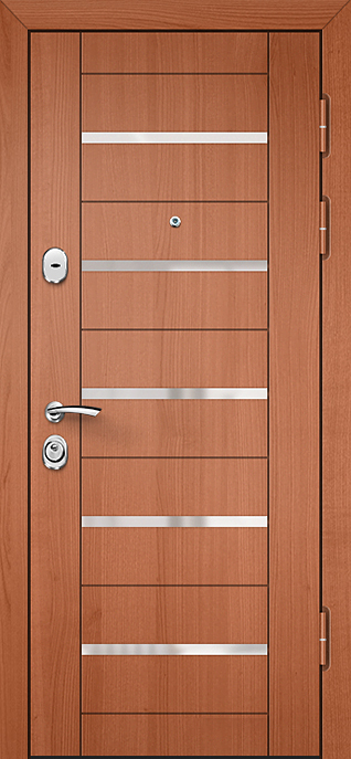 Современная входная дверь с цилиндровым замком №21 сочетает строгую надежность металлической конструкции и аккуратный внешний вид. Каркас из профильной трубы и лист стали толщиной 2 мм образуют прочный щит, усиленный ребрами жесткости и блокираторами. Накладки из МДФ придают полотну более «домашний» облик: материал не только эстетичен, но и практичен — ПВХ-покрытие стойко переносит небольшие повреждения и сохраняет первозданный вид долгие годы. Такая дверь подходит для квартиры, офиса или частного дома, где важно совместить защиту и стиль. Цилиндровый замок обеспечивает удобное и надежное закрывание, а два контура резинового уплотнителя защищают от сквозняков и лишнего шума. При желании возможно дополнить конструкцию тепло- и шумоизоляцией или установить замки другого типа, включая современные электронные системы. Современная входная дверь с цилиндровым замком №21 от производителя: быстрое изготовление и монтаж в Туле, индивидуальные размеры, широкий выбор материалов и фурнитуры, официальная гарантия до 10 лет.